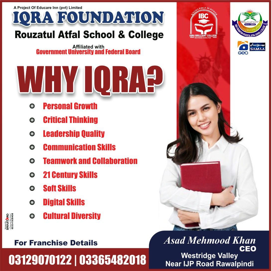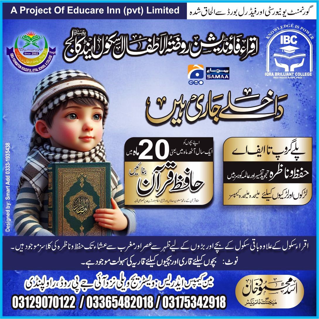 IQRA FOUNDATION Rouza Tul Atfal School and college westridge Rwp